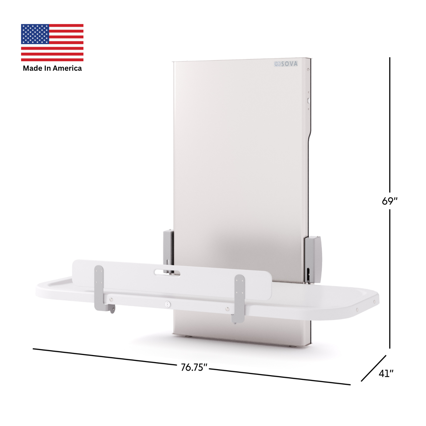 Engineered for flexibility, the Sova Ascent mounts easily to most existing wall structures and features a convenient plug-in design requiring a GFCI outlet or GFCI-protected circuit, simplifying installation and reducing downtime. Its height-adjustable platform allows caregivers to position the surface at an optimal level for smooth transfers and comfortable care.